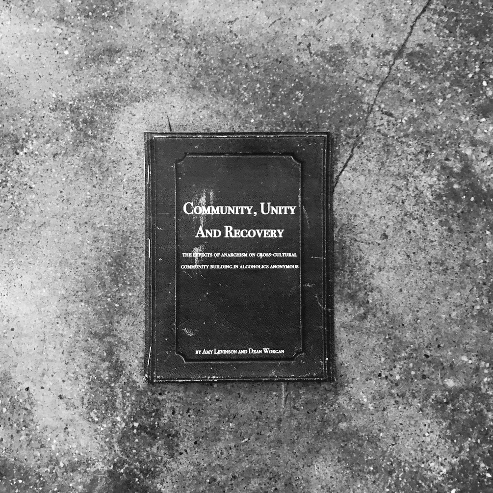Mini-zine format of the article "Community, Unity and Recovery: The effects of anarchism on cross-cultural community building in Alcoholics Anonymous" by Amy Levinson and Dean Worgan.